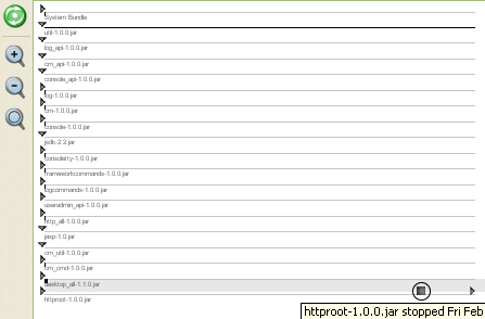 • Time line - each bundle event is displayed in a zoomable time line view.